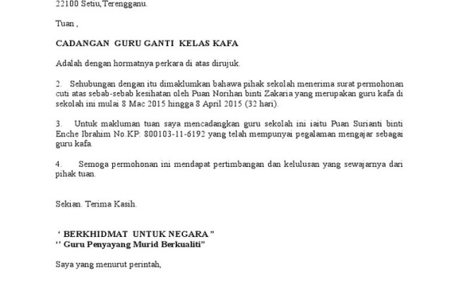 Surat Permohonan Guru Ganti Contoh Surat Permohonan Otosection